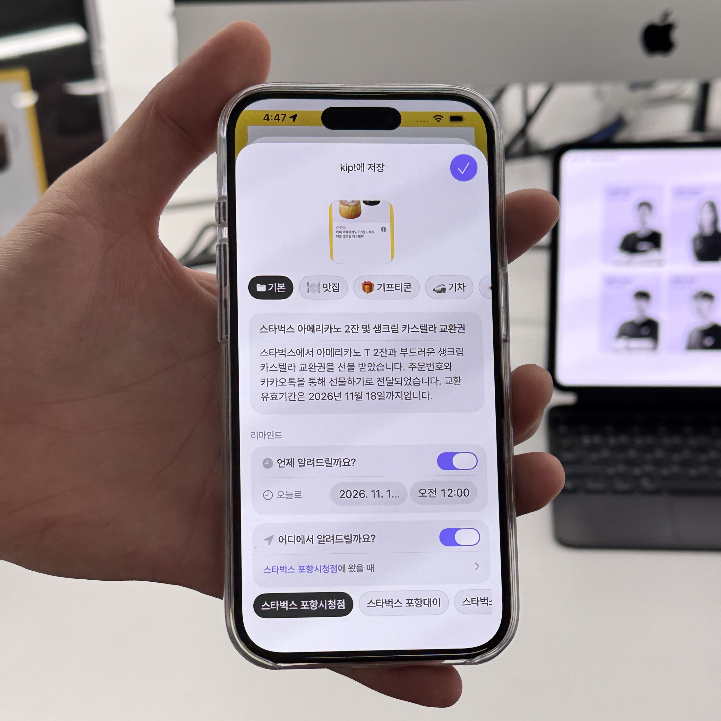 - “여기서 이 기프티콘 쓸 수 있어요” 알림이 뜨고그전에 사용하라고 알림을 보내줍니다